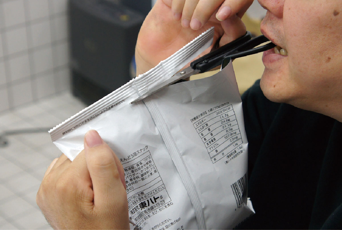 人が近くにいれば菓子の袋を